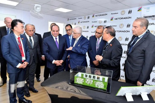 Mr. Liu Dejian (first from front left), Founder and Chairman of NetDragon introduced Intelligent Classroom Solution developed by NetDragon, to His Excellency Abdel Fattah el-Sisi, President of Egypt (third from front left)