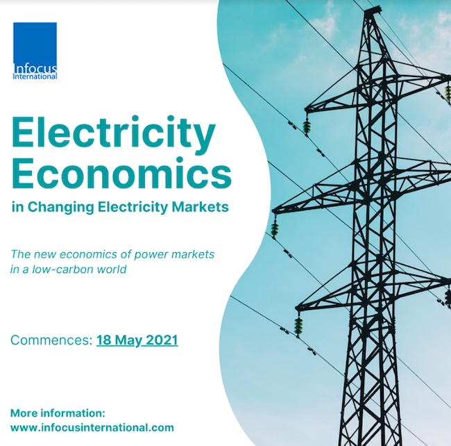Infocus International Group has launched the Electricity Economics in Changing Electricity Markets online course and it will be commencing live on 18th May 2021. Throughout the four sessions, you will understand the new economics of power markets in a low-carbon world.