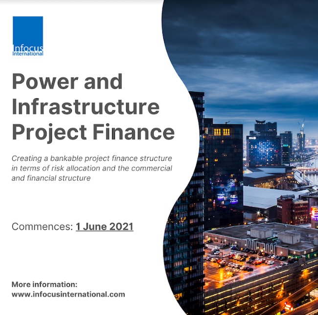 Infocus International Group has launched the Power and Infrastructure Project Finance online course and it will be commencing live on 1st June 2021. Throughout the five sessions of the course, you will be able to create a bankable project finance structure in terms of risk allocation and the commercial and financial structure.