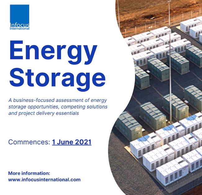 Infocus International Group has launched the Energy Storage online course and it will be commencing live on 1st June 2021. Throughout the four sessions, you will be introduced to a business-focused assessment of energy storage opportunities, competing solutions and project delivery essentials.