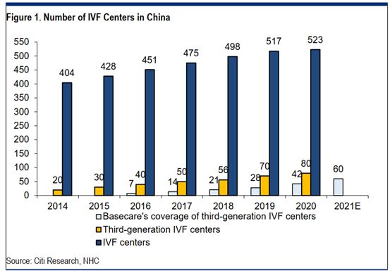 图表一: 中国IVF中心数量(资料来源: 花旗研究公司,NHC,格隆汇整理)