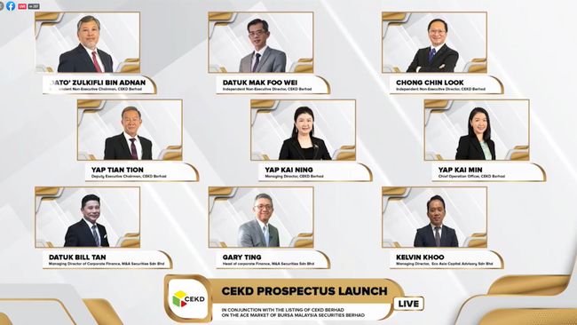 Managing Director of CEKD, Yap Kai Ning, said: "The forthcoming listing of CEKD Berhad marks a significant milestone in our history. This IPO will not only strengthen our presence in the industry as a leading die-cutting solutions provider and manufacturer but also raise our profile to help us in our expansion plans. We are committed to sustaining our reputation and creating value for our shareholders."