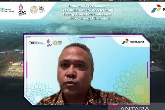The screenshot of Pertamina's Senior Vice President of Investment Management Daniel Purba at the virtual Media Briefing Pertamina-Dubai Expo, Jakarta, Friday (3/19/2022). (ANTARA/Katriana)