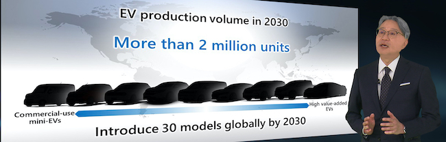 Through these initiatives Honda is planning to launch 30 EV models globally by 2030, with a full lineup from commercial-use mini-EVs to flagship-class models, and Honda is planning for production volume of more than 2 million units annually.