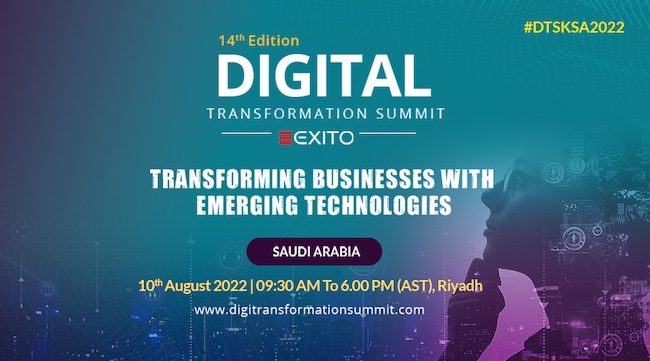After successful 13 editions of Digital Transformation Summit, Exito (www.exito-e.com) is all set to host another milestone event - which serves as an ideal platform to enhance the experience to latest insights in "Transforming Businesses with Emerging Technologies" will address the importance of the full potential of technology as a driver for every organization to function securely, efficiently and effectively. In the highlight of this 13th Digital Transformation Event will provide a detailed overview of the existing and predicted trends within a ever-changing digital landscape across the Middle East.The Digital Transformation Summit is an ideal platform for IT leaders in Saudi Arabia to meet, interact, gain new insights and discuss various methods to overcome the glaring challenges faced by the digital industry. Through engaging panel discussions, insightful keynotes and immersive networking sessions, the event is sure to incite both thought and action at your organization. At the Digital Transformation Summit, Saudi Arabia?s top IT leaders will share their best practices and case-studies from their transformation journey.