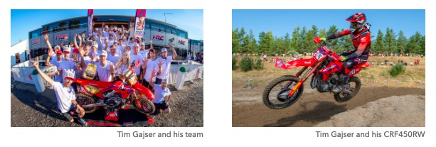 Honda factory team(1) Honda Racing Corporation (HRC) rider Tim Gajser (Slovenia) has won his fourth championship title, his first in two years, in the FIM(2) World Motocross Championship Premier MXGP class (450cc).