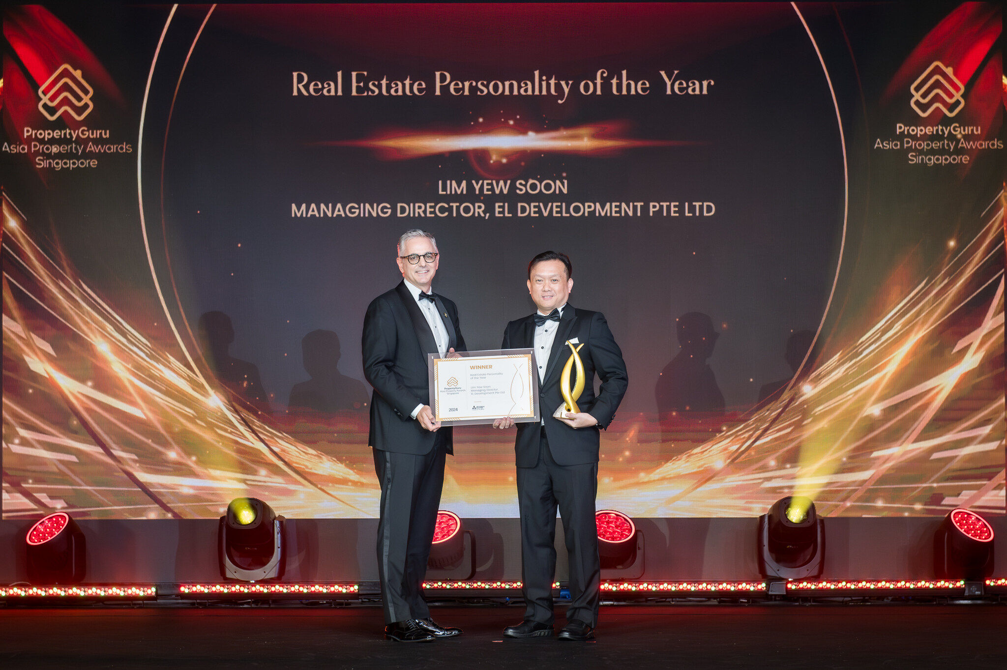Two of the most accomplished achievers in the Singapore real estate industry were honoured during the gala. Lim Yew Soon, managing director of EL Development Pte Ltd, received the Singapore Real Estate Personality of the Year award from the editorial team of Property Report by PropertyGuru, the official magazine. Jerome Ng, director for business development at Chiu Teng Group, received the Rising Star award from PropertyGuru.com.sg, the official portal.