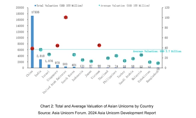 2. Chart 2: Total and Average Valuation of Asian Unicorns by Country