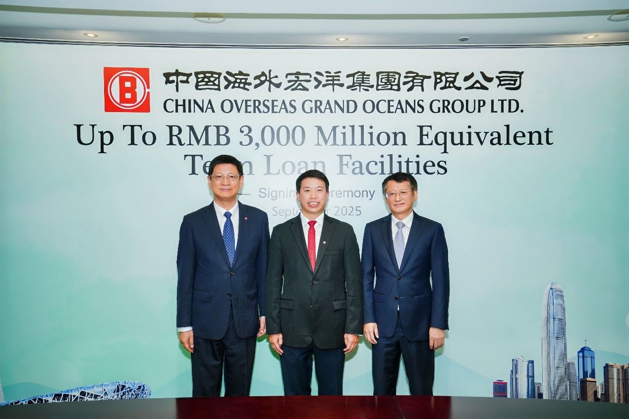 香港,2025年9月12日 - (亚太商讯) - 中国海外宏洋集团有限公司(股份代号:00081.HK,「中海宏洋」)于 2025 年 9 月 10 日(星期三)在香港为其与7家著名银行订立总额最高为等值30亿元人民币的贷款协议举行签约仪式。此次贷款为中海宏洋历年来筹组的最高金额境外银行贷款。