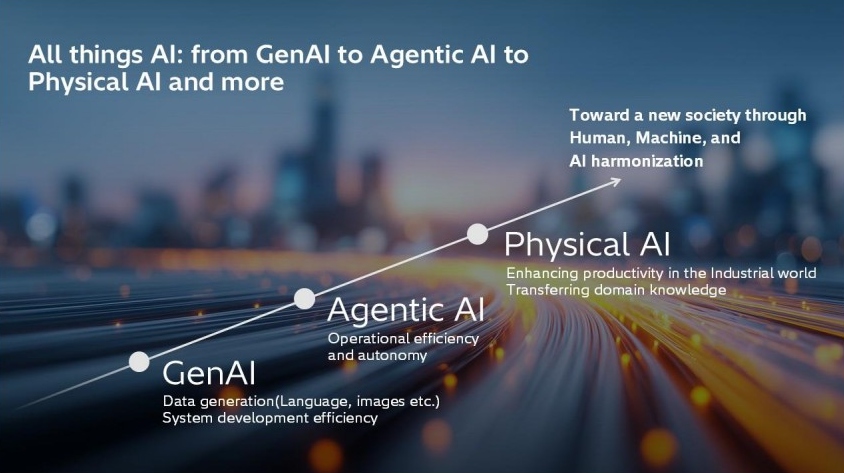 Advancing Hitachi’s AI Vision Led by the Digital Systems & Services Sector Hitachi’s Digital Systems & Services sector, leading the company’s AI strategy under Lumada 3.0, is driving the evolution from Generative AI to Agentic AI—which autonomously coordinates multiple tools to perform complex tasks—and now to Physical AI, where intelligent systems interact with and control the physical world through robotics and IoT-enabled devices.