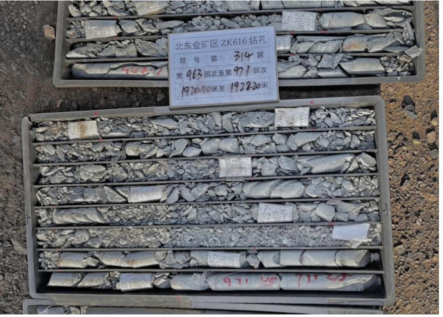 超深鑽孔的實施更是揭示了“多層樓”成礦模式的巨大資源前景。例如ZK616鑽孔在進尺至2002.4米時,自上而下共發現了5層礦化體,甚至在1920.4米的深度仍見礦厚度4.38米,品位6.84g/t,呈現出“深部加厚、品位躍升”的顯著特徵。