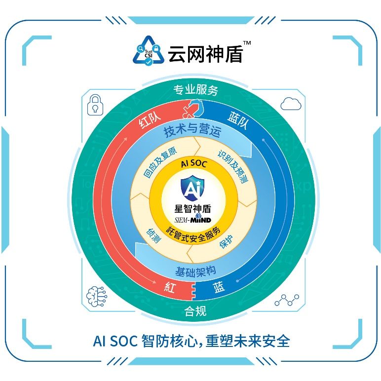 以创新不断的AI技术对应AI带来不断迭代的数据及安全新风险。全新SIEM-MiiND星智神盾是AI SOC的核心技术智慧引擎,赋能数智化安全营运, 深度融合AI技术与大数据模型,小场景应用,以智能化综合信息调查系统收集数据,优化SOC 专家风险及威胁分析流程,缩短检测与响应时间,提高风险管理精准度和预报效率,减轻企业警报疲劳。中信国际电讯CPC旗舰信息安全解决方案TrustCSI(TM) 3.0 云网神盾结合高质量AI SOC平台, 实现「识别、预测、保护、侦测、响应及恢复」的综合智能安全防护, 重塑未来网络安全模式,守护企业免受网络攻击。